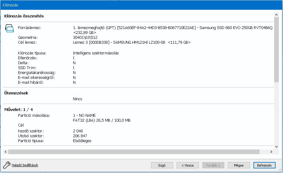 olvasható az utolsó partíció a klónozás során automatikusan össze lett