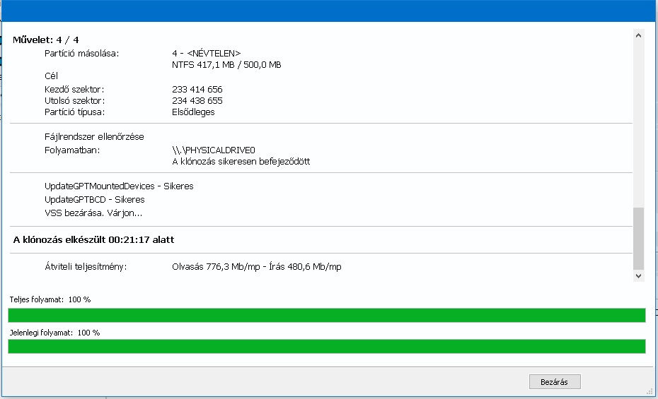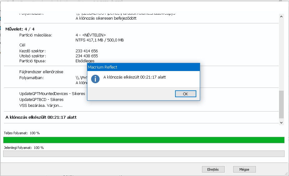 4. Ezzel elkezdődik a kijelölt partíciók másolása vagy ha a teljes