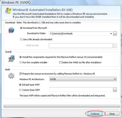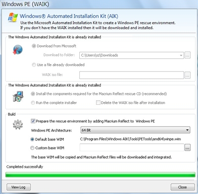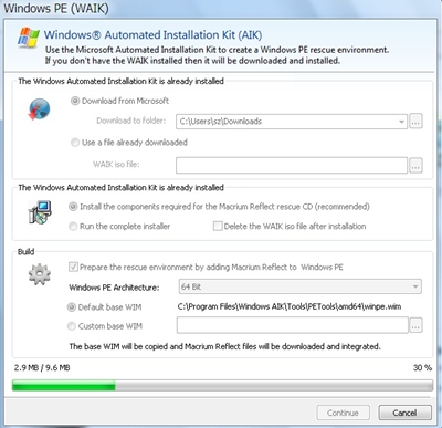Alábbiakban a Macrium Reflect programmal való Windows AIK letőltésétől
