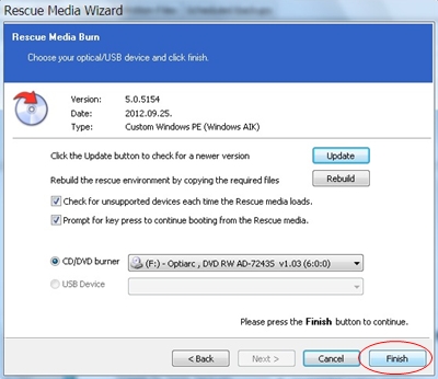 A Rescue CD létrehozására kétféle lehetőség is van.